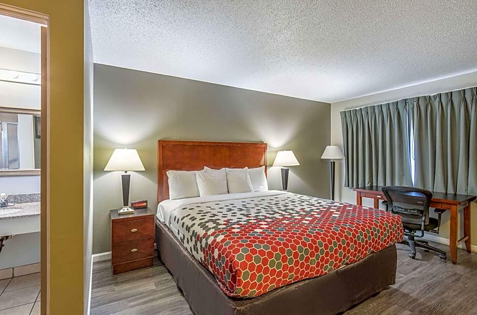 A satellite TV, microwave, small fridge and coffee machine are included in this air-conditioned room.